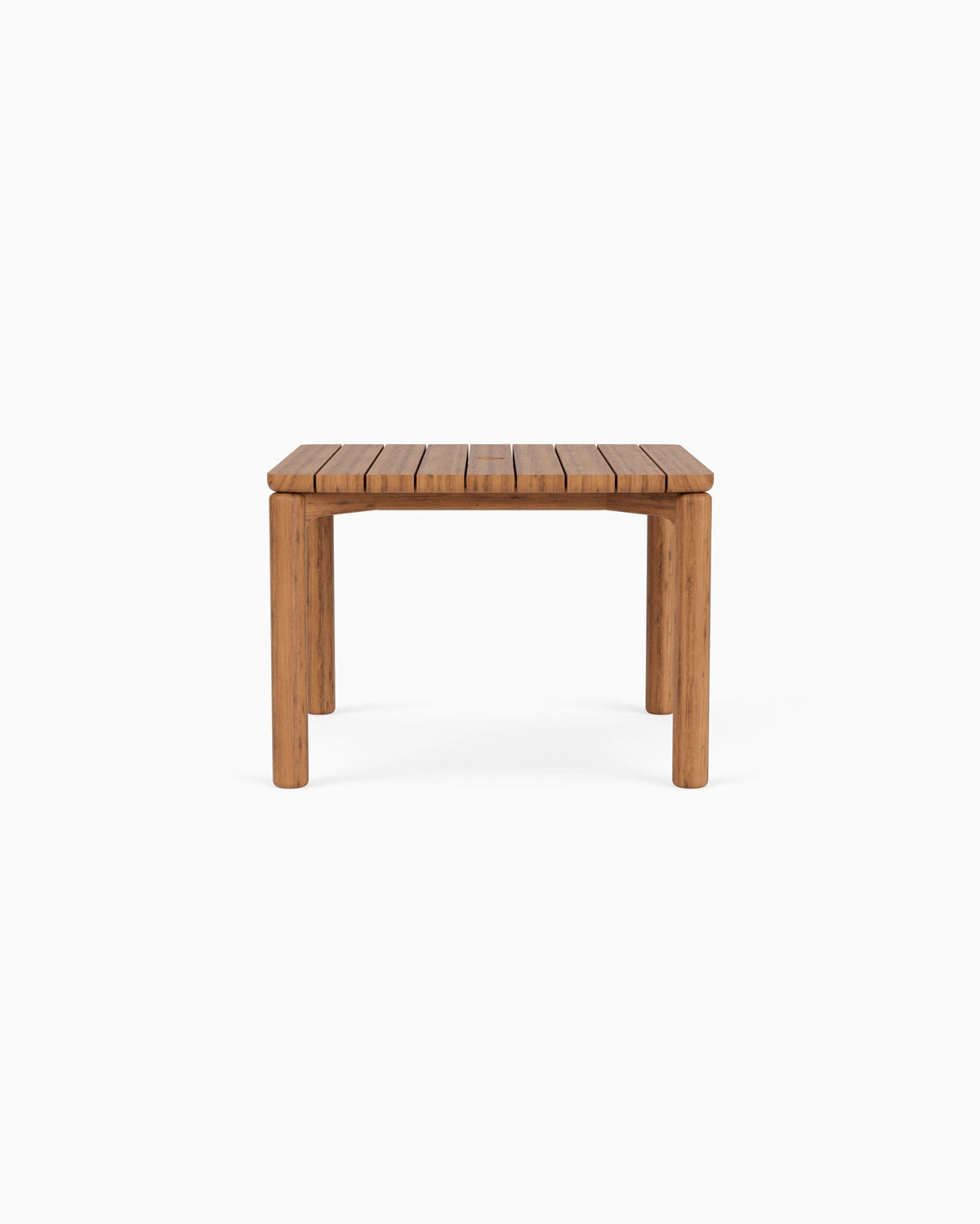 The Outdoor Dillon Square Dining Table brings Denver Modern’s iconic indoor design language outdoors in a compact, versatile form. Crafted as a modern outdoor dining table, it features a slatted teak dining table top engineered for drainage and outdoor durability, paired with gently rounded legs and softened edges for a refined, contemporary presence. Built from solid teak, this teak outdoor dining table naturally withstands the elements and will develop a soft silver patina over time or maintain its warm golden tone with care.