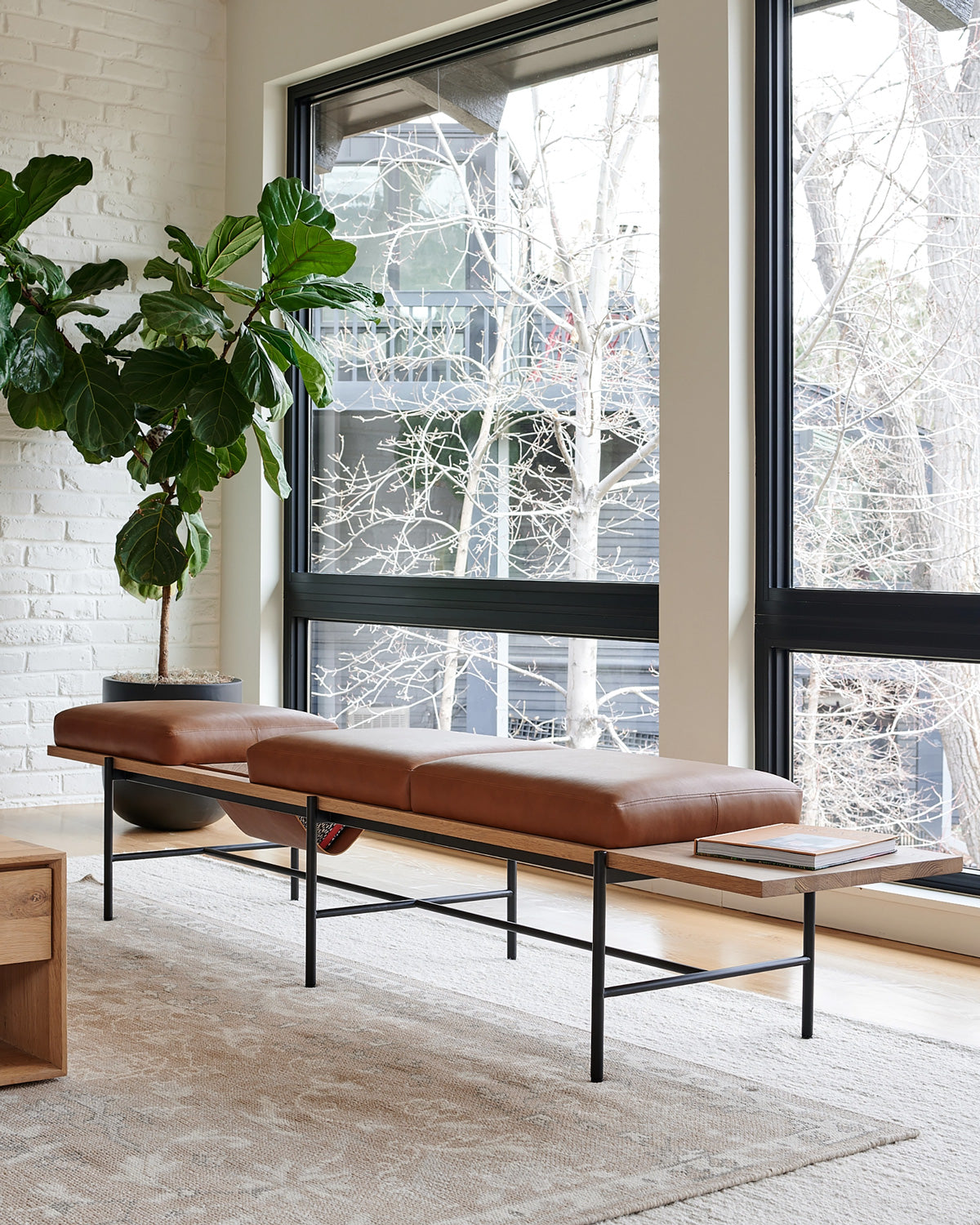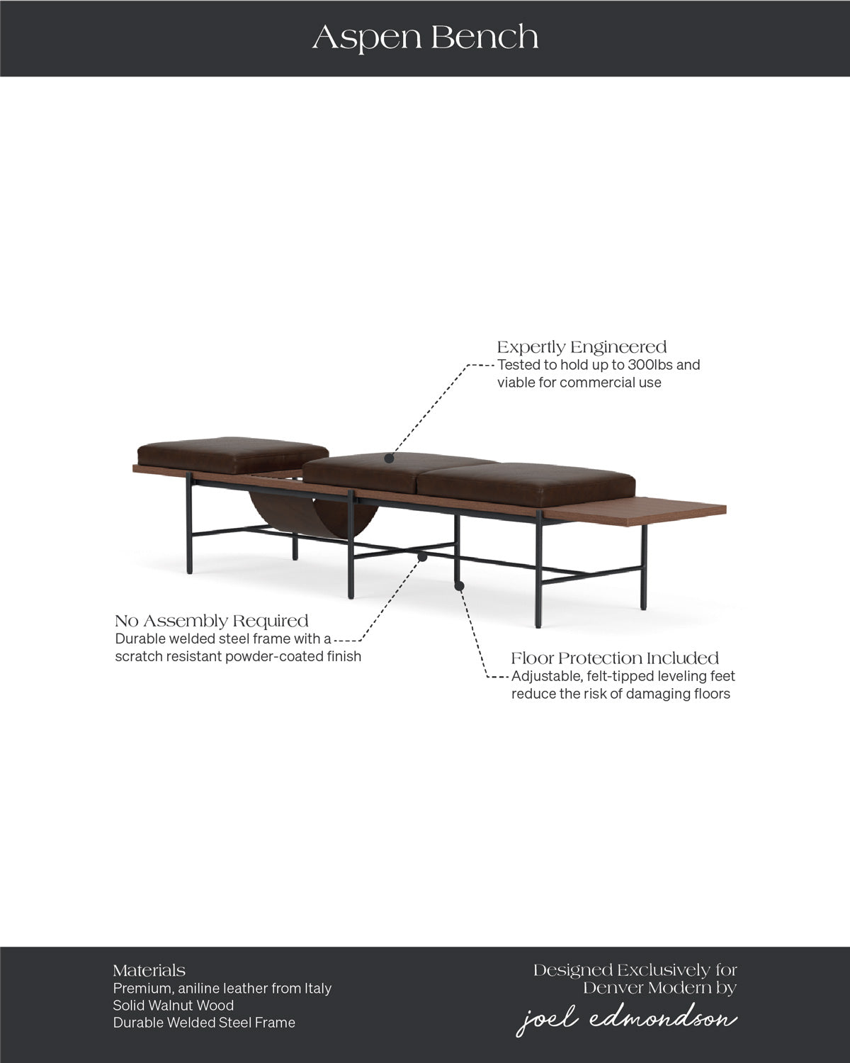 Crafted with high-quality materials, our Aspen Bench features a comfortable leather seat perfect for relaxing or catching up on your reading.