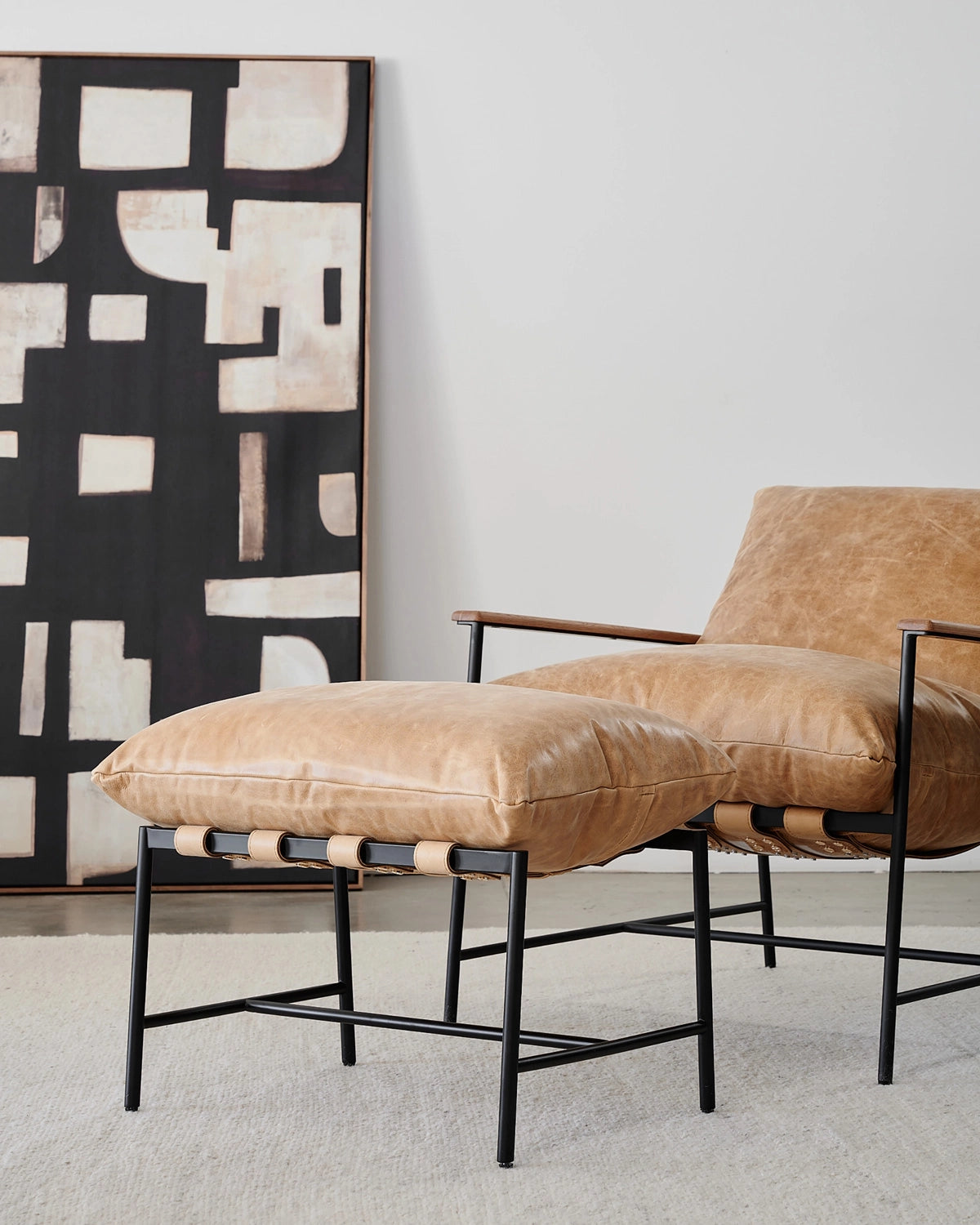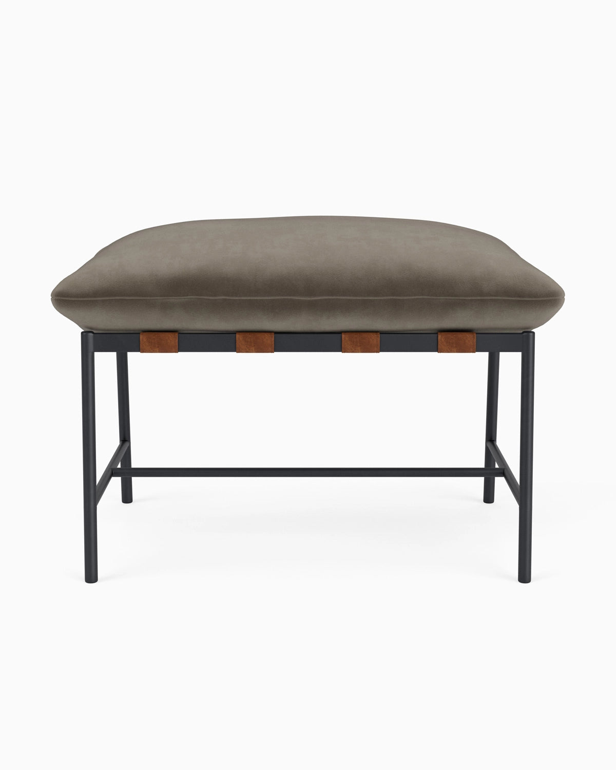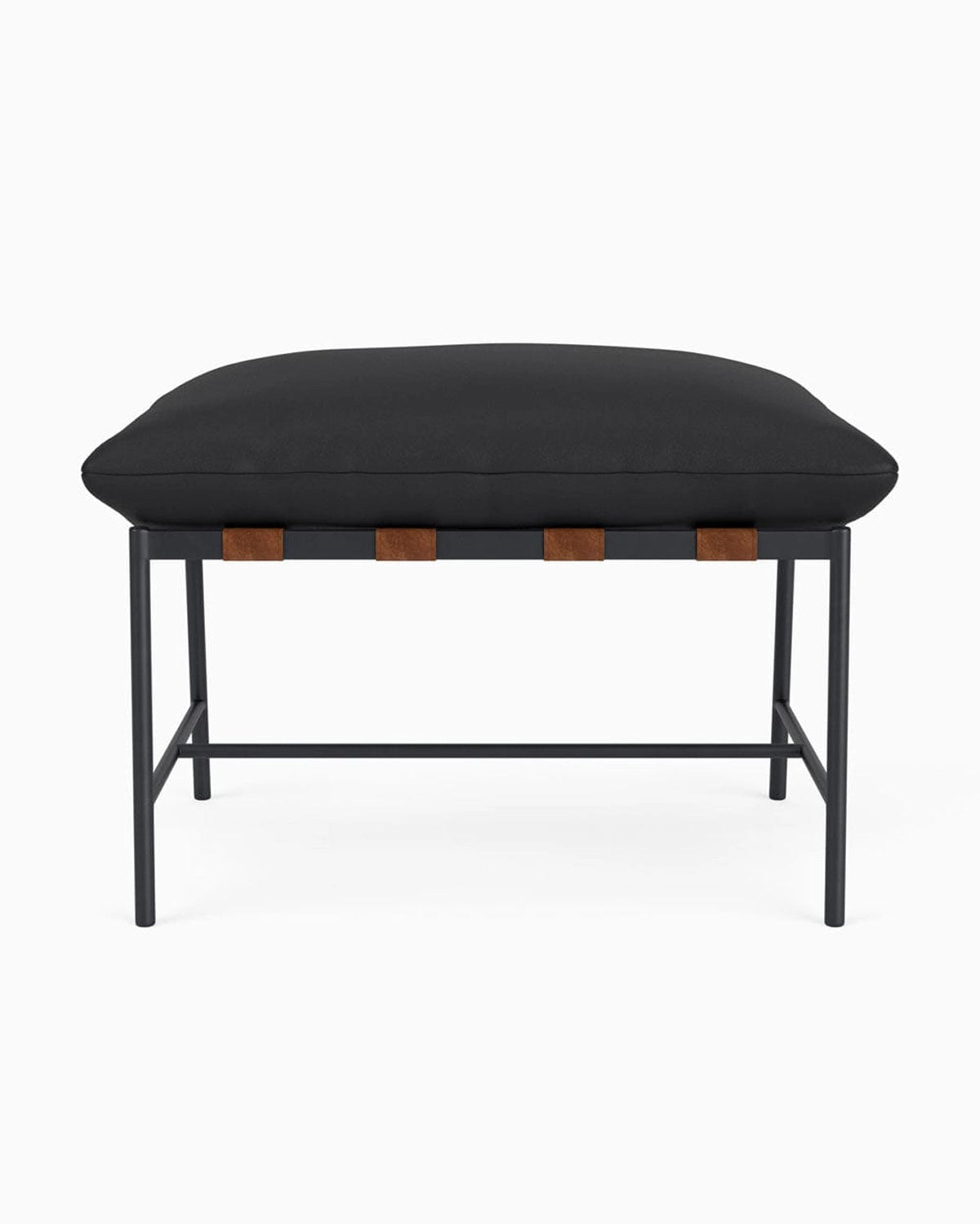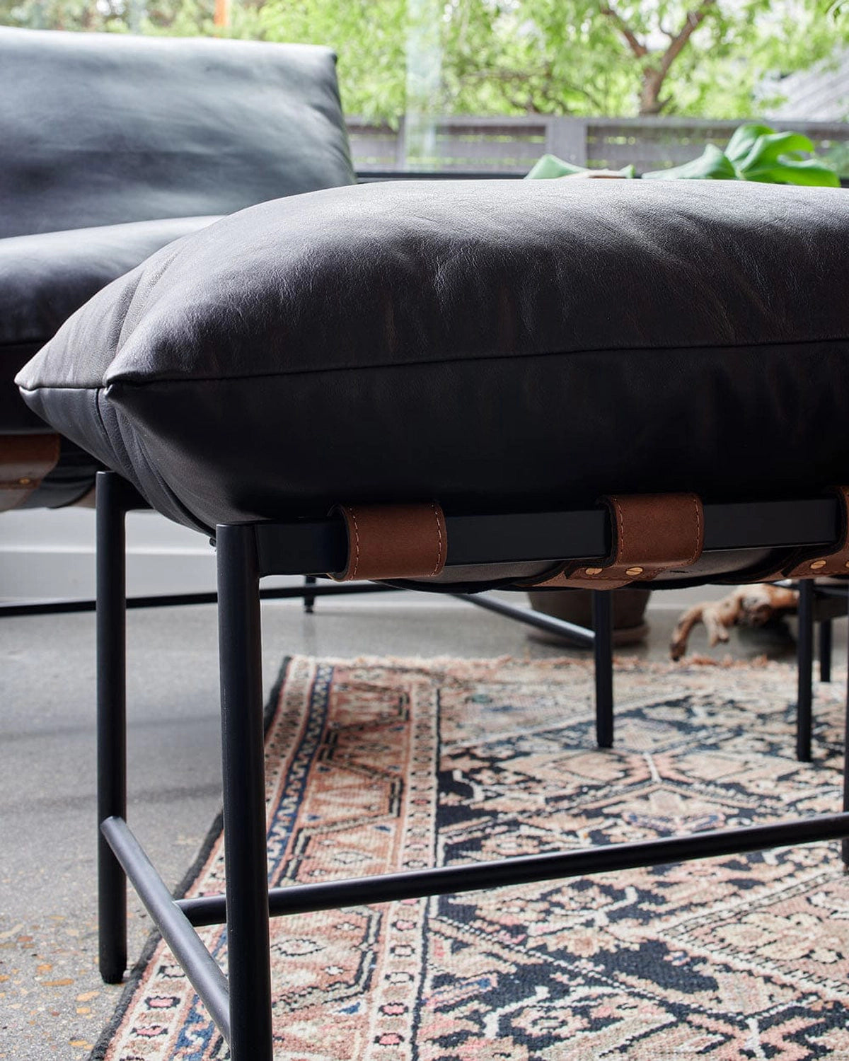 The Vail Ottoman is the perfect companion to our best-selling Vail Lounge Chair, offering comfort, versatility, and signature Denver Modern design. Crafted with the same premium materials, this piece features a sleek black powder-coated steel frame and a plush, cushioned top upholstered in your choice of performance fabrics or artisan leathers.