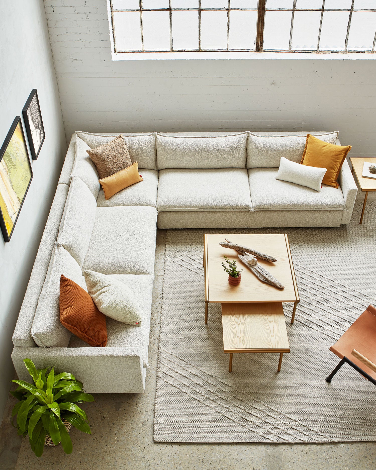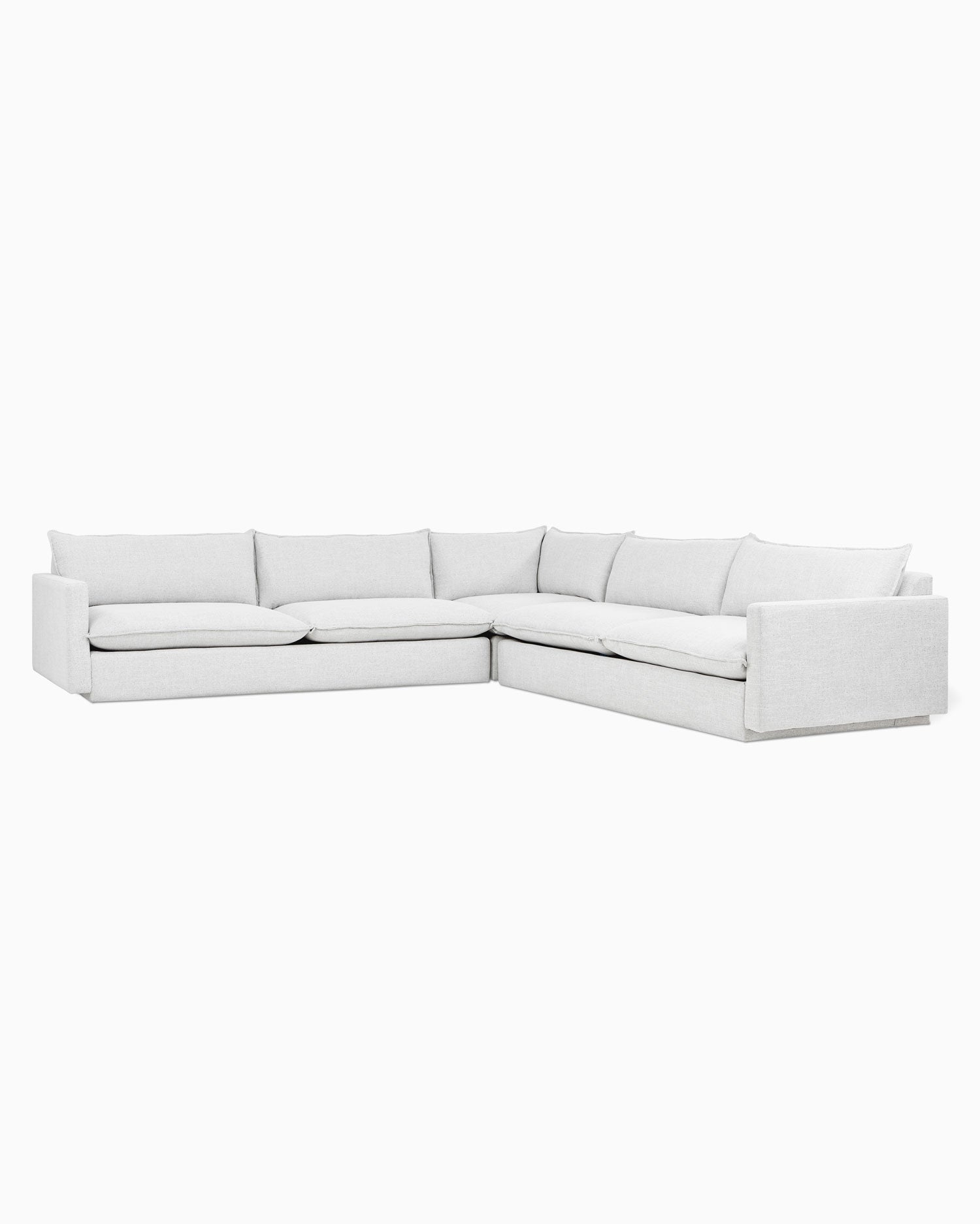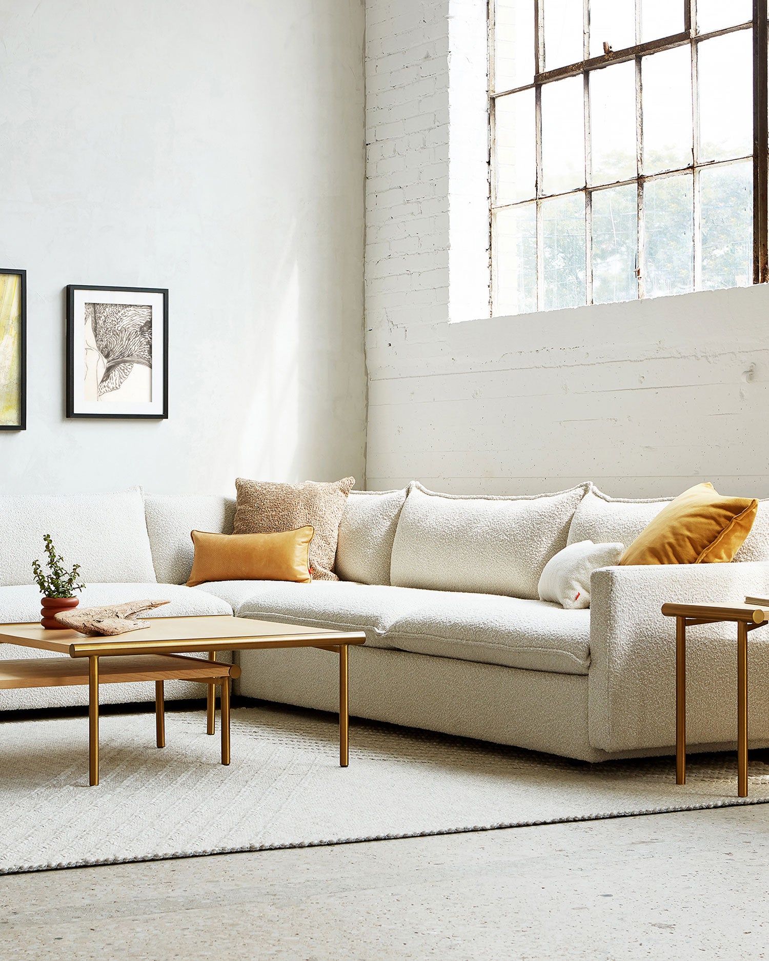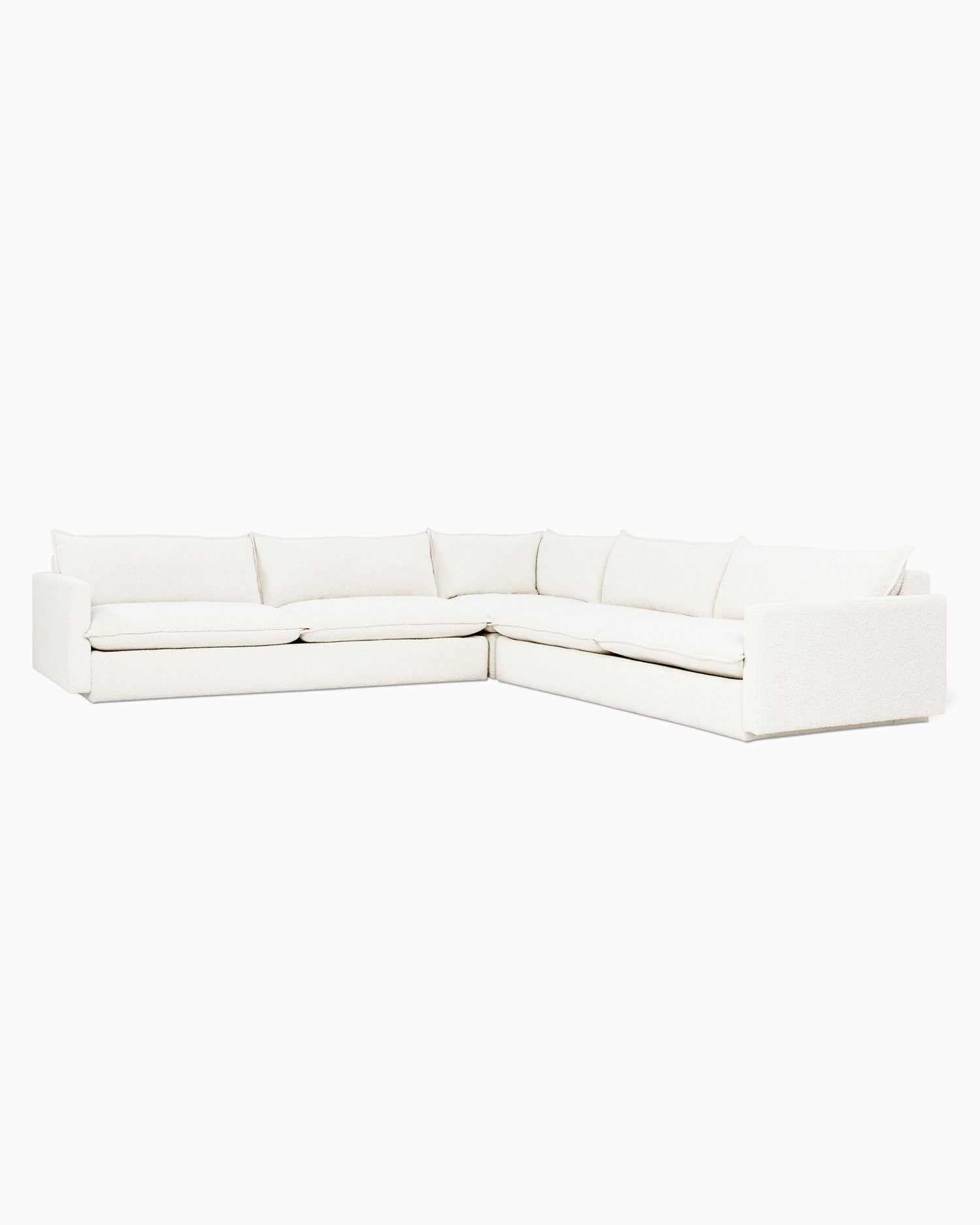 The cloud-like Sola Bi-Sectional is an open invitation to lounge. Embodying the ease of coastal living in a design inspired equally by contemporary Italian design and mid-century classics, Sola is perfect for entertaining or enjoying an afternoon siesta. A plush, expansive seating area, and back cushions filled with our signature, eco-friendly PET fill (made from recycled plastic spun into billowy, synthetic down) means an extra cozy experience. French-seam detailing, stepped arms, and inset legs all subtly contribute to a feeling of weightlessness that will beckon you to sink in after a long day.