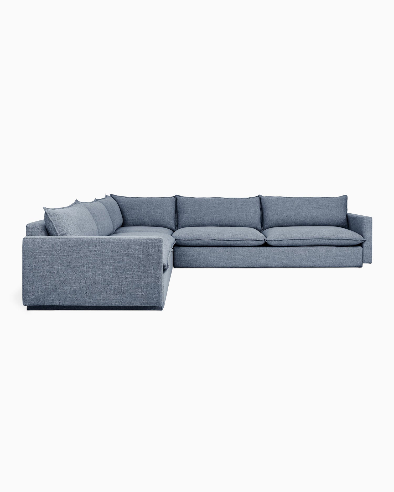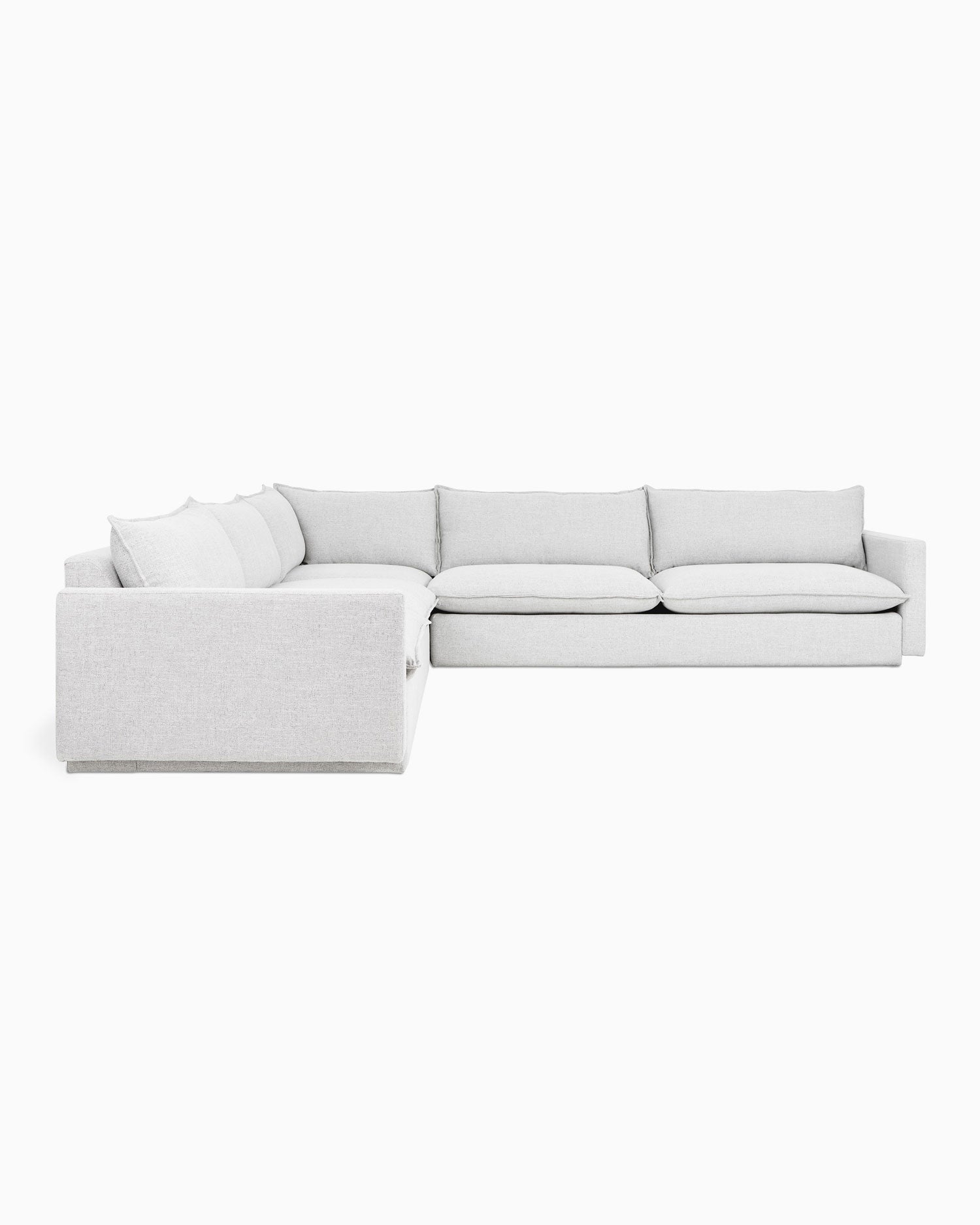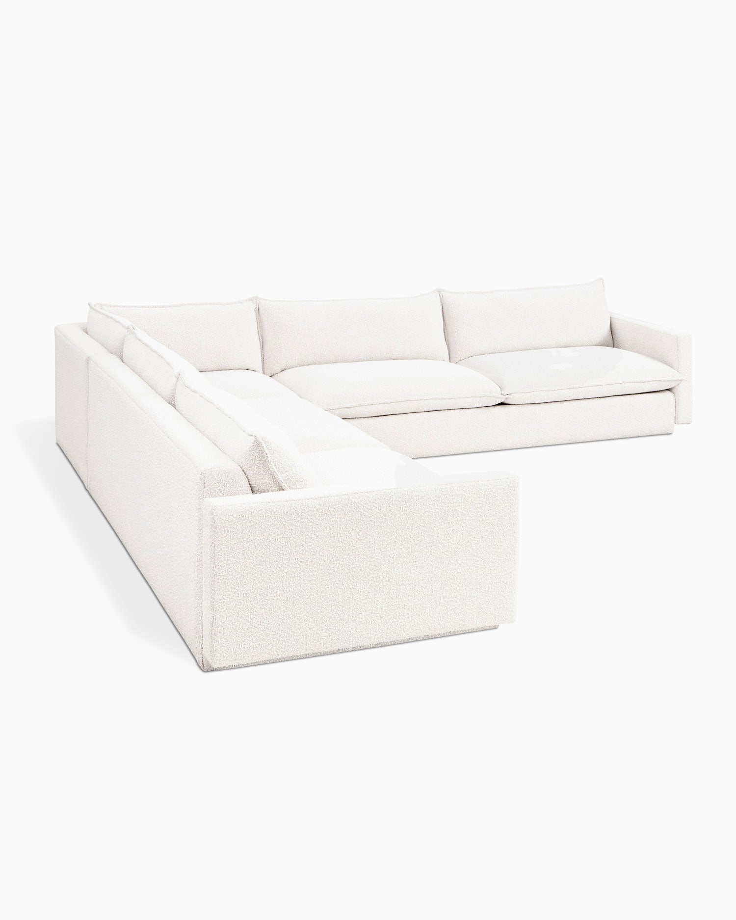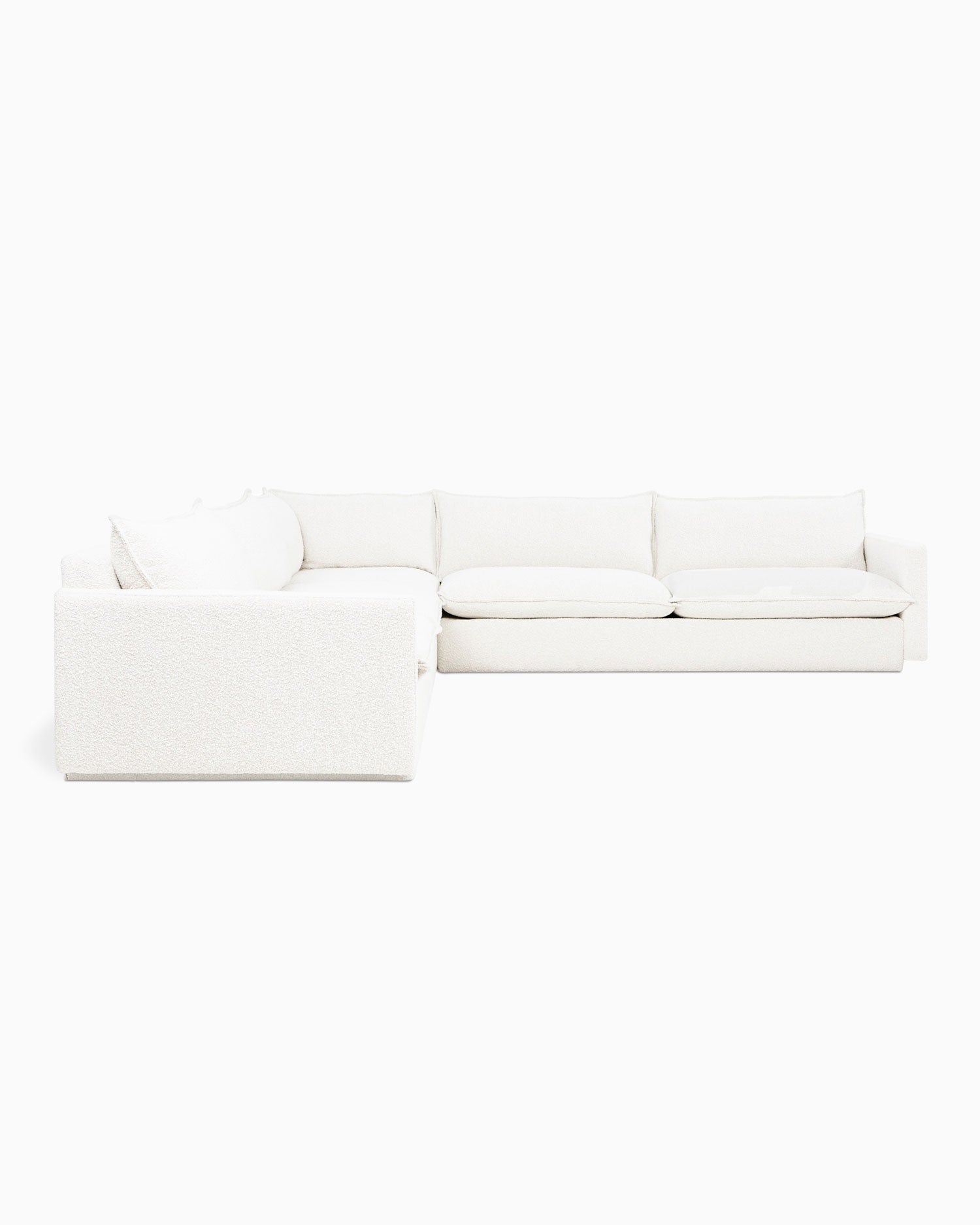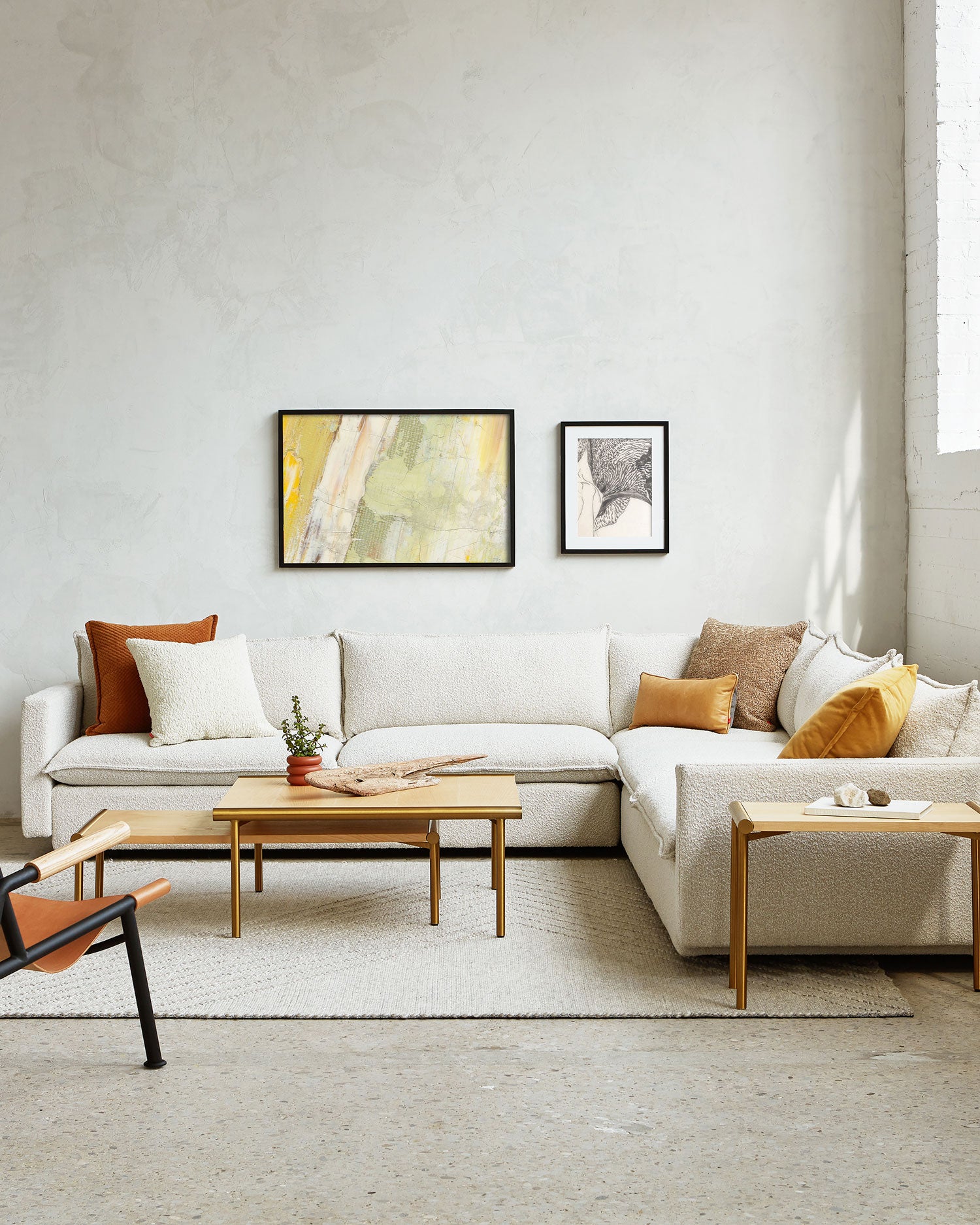 The cloud-like Sola Bi-Sectional is an open invitation to lounge. Embodying the ease of coastal living in a design inspired equally by contemporary Italian design and mid-century classics, Sola is perfect for entertaining or enjoying an afternoon siesta. A plush, expansive seating area, and back cushions filled with our signature, eco-friendly PET fill (made from recycled plastic spun into billowy, synthetic down) means an extra cozy experience. French-seam detailing, stepped arms, and inset legs all subtly contribute to a feeling of weightlessness that will beckon you to sink in after a long day.