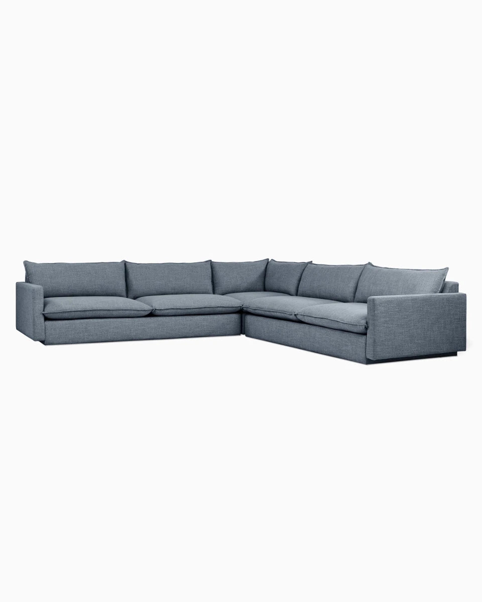 The cloud-like Sola Bi-Sectional is an open invitation to lounge. Embodying the ease of coastal living in a design inspired equally by contemporary Italian design and mid-century classics, Sola is perfect for entertaining or enjoying an afternoon siesta. A plush, expansive seating area, and back cushions filled with our signature, eco-friendly PET fill (made from recycled plastic spun into billowy, synthetic down) means an extra cozy experience. French-seam detailing, stepped arms, and inset legs all subtly contribute to a feeling of weightlessness that will beckon you to sink in after a long day.