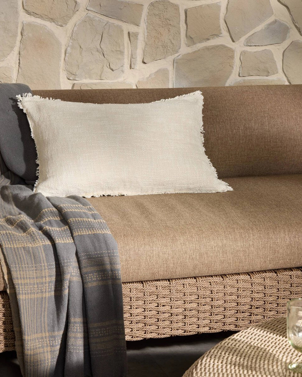 High slub fabric with an eyelash fringe brings textural comfort to any space, indoors or out. Cover or store indoors during inclement weather and when not in use. Available as cover only or with an insert.