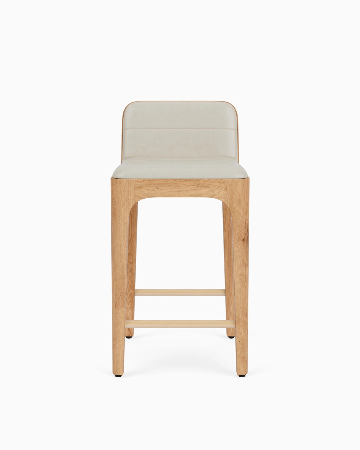 The Canyon Stool translates sculptural sophistication onto its wooden frame with a light and minimalist approach: soft arches and tapered legs merge seamlessly into a channel tufted seat. The elevated material palette blends either white oak or walnut wood with a deliciously soft, premium leather in a similar color - chosen to be monochromatic to emphasize the symbiotic textures of leather and wood. The rattan back of the Canyon Stool enhances these organic textures, making its easy refinement eye-catching from front to back.